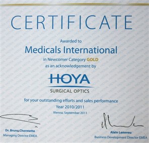 On September 11, 2014, during the Global Distributor Meeting in London, Medicals International received the Ellex 2014 Outstanding Service Award.