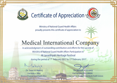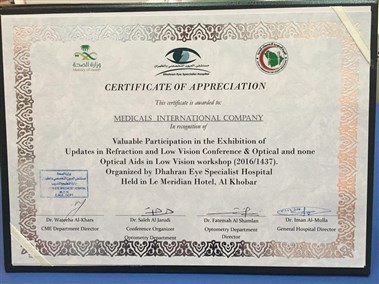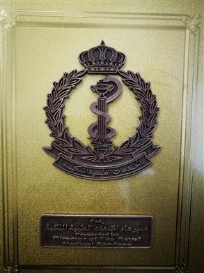 Medicals International received this token of appreciation from the the Director of the Jordanian Royal Medical Service for a lecture and workshop on UltraHealth and Rose K contact lenses.