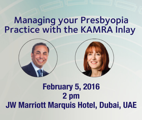 Medicals International, in collaboration with AcuFocus, hosted an event entitled "Managing your Presbyopia Practice with the Kamra Inlay" featuring Dr. Jeff Machat, MD and Dr. Sondra Black, OD, on February 5th, 2016 at the JW Marriott Marquis Hotel Sheikh Zayed Road, Business Bay, Dubai.